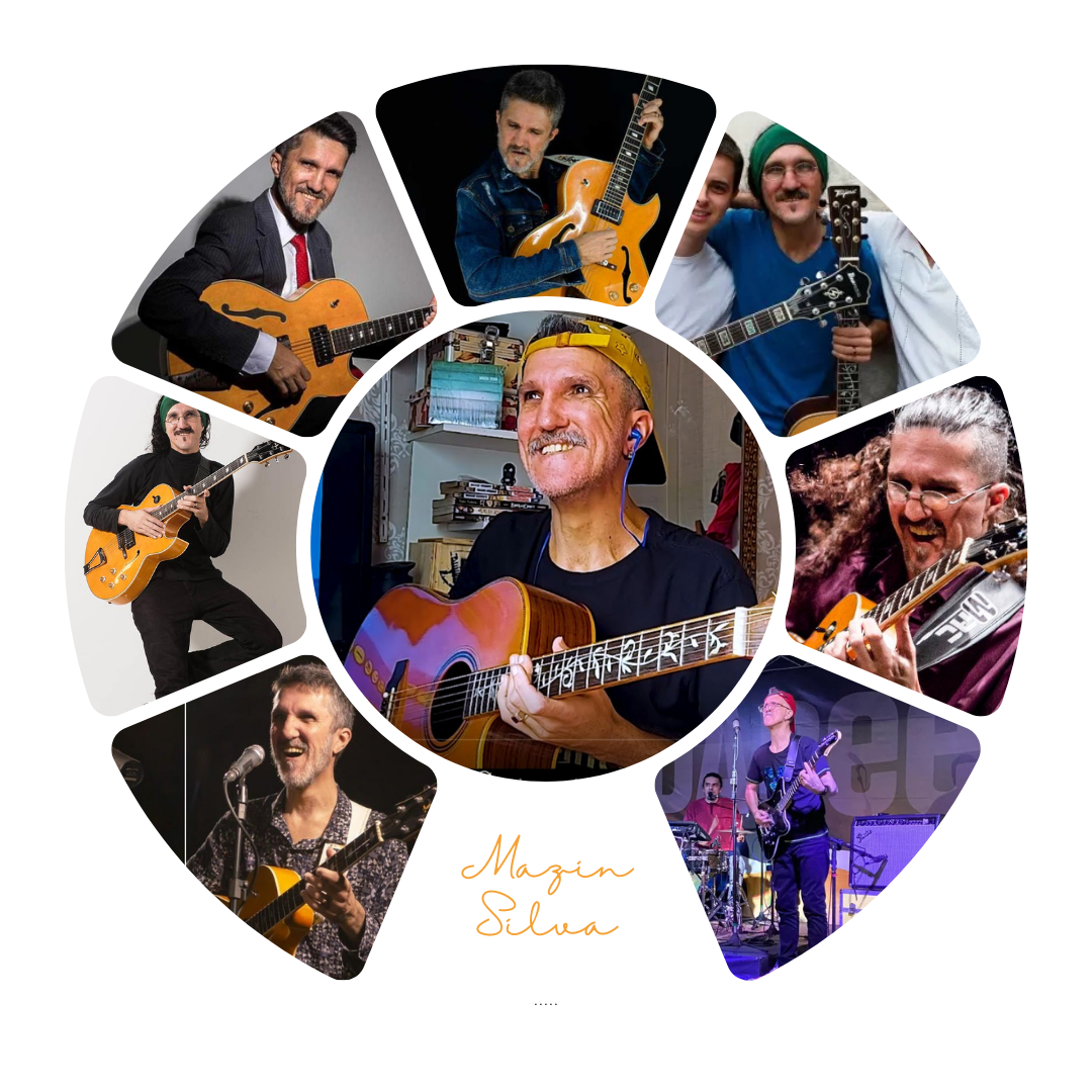 Mazin Silva Músico profissional e professor de guitarra e violão a mais de 30 anos. Tendo se apresentado em todo território Brasileiro nos EUA e Europa. Tem em sua carreira 5 cds de musica instrumental e 3 DVD de sua Autoria! CD Curumim (2005); CD Balaio de Gato(2006); DVD Balaio de Gato(2007); Vídeo-aula Guitarra Iniciante(2008); Vídeo aula Ritmos Do Brasil(2008); DVD Lar dos Sonhos(2009); CD Andrew (2012); CD Quântico(2013); CD De Norte a Sul(2014); CD Lúmina (2015); DVD Por Inteiro (2016).